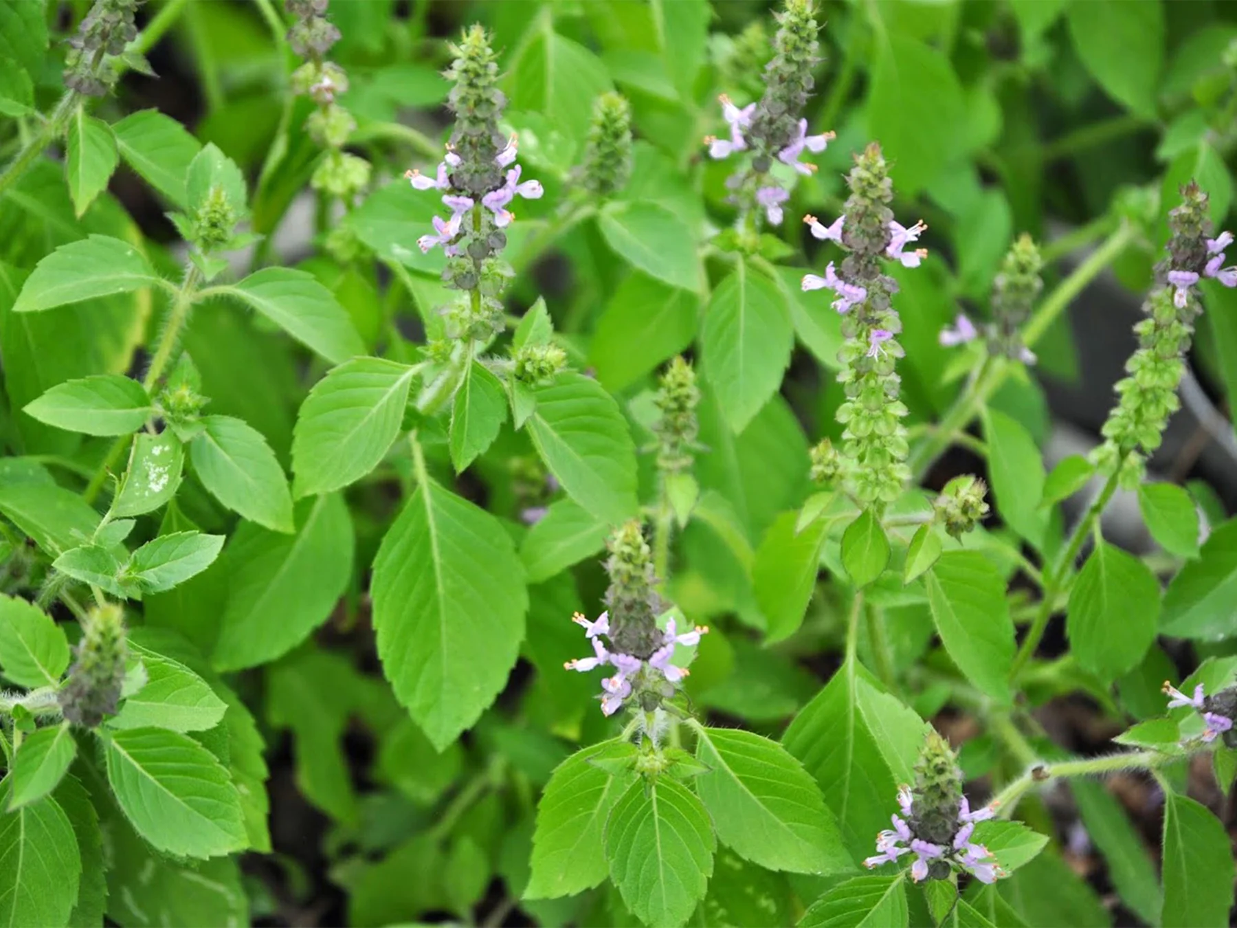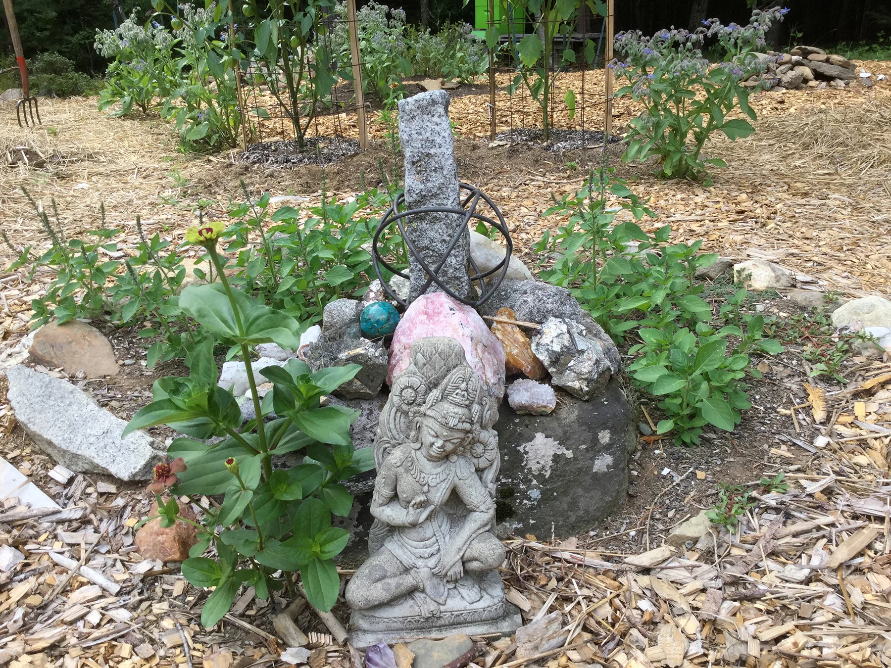 My totem plant is Sacred Basil. It all started with loving Tulsi tea, which is a tea from India and highly honored for its healing properties. So, I bought some seeds to grow, planted it, and now want it everywhere: in my garden, in my house, at the studio, anywhere I can be close to it. The aroma that comes from brushing my hand over it sends me to a different dimension, one that opens my heart and stimulates an olfactory memory that is inexplicable. I can never have enough of it. Then one year, I found a recipe for pesto that uses it. It can not come into maturity in the garden fast enough, for I am longing for its flavor, now and always. This special plant has so many uses and will always have a place, or places, in any gardens that I create. You must want the recipe by now!